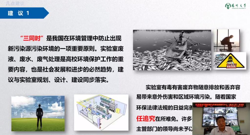 本次网络培训时间为2020年6月15日至19日,内容聚焦高校实验室安全管理和应急处理、生物安全及疫情防控等共5个主题,培训形式以网络直播为主,辅以线上实时互动及答疑环节。来自浙江大学的冯建跃教授和吴南屏教授、军事医学科学研究院的李劲松教授、南京航空航天大学的王勤教授及扬州大学的张键教授做了专题培训汇报,内容包括高校实验室安全规范化管理体系研究、新冠感染与生物安全反思、高校实验室生物安全管理的关注点、应急预案与演练的实践、高校实验室废液废气处理设施建设探讨等方面。