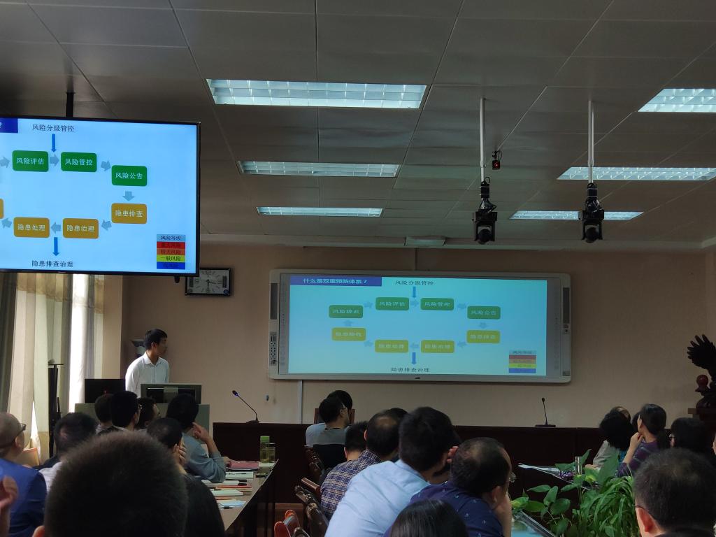 为了全面落实公司安全风险辨识管控与隐患排查治理双重预防体系计划内容的实施,太阳成城集团tyc234cc官网于9月29日下午特邀技术合作单位河南省新伯乐教育科技有限公司专业讲师在化学楼407学术报告厅召开了“太阳成城集团tyc234cc官网双重预防体系建设培训会”。会议由副经理归风铁主持。