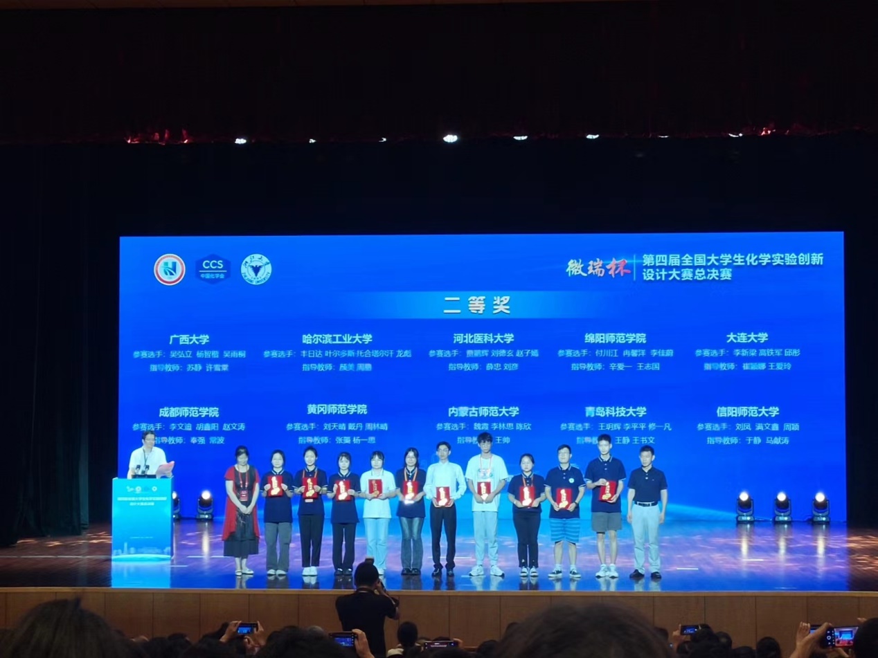 8月20-22日, “微瑞杯”第四届全国老员工化学实验创新设计竞赛总决赛在浙江大学举办。公司太阳成城集团tyc234cc官网化学专业员工刘凤、满文鑫、周颖组成的参赛团队代表华中赛区参加全国总决赛,在马献涛、于静老师指导下,精彩展演,沉着应答,表现出色,最终获得全国二等奖。