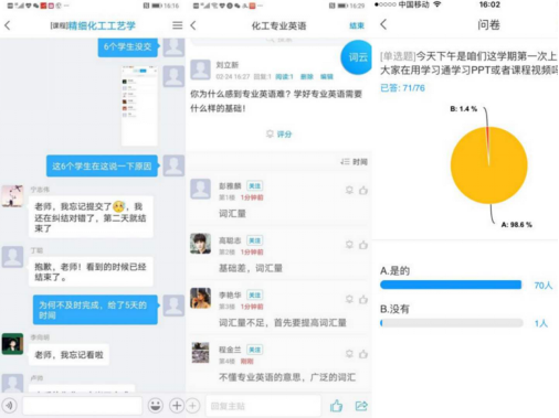 2月中旬以来,全体教师充分利用网络教学平台与网上教学资源,精心设计课程的内容,采用速课、讨论互动、测验、课下作业等多种教学形式,积极开展了专业课教学。为了保证网络教学质量,上课期间,公司领导、教学管理人员和辅导员全程在线,随时准备处理突发情况,协助师生解决网络授课技术问题,在全体师生的共同努力下,化院线上教学秩序运行平稳、课堂教学规范、过程管理到位。