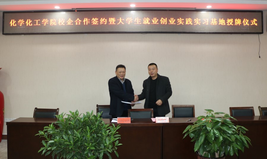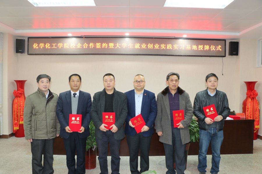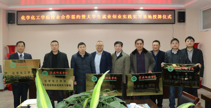 12月12日,太阳成城集团tyc234cc官网与信阳科美新型材料有限公司、信阳怡和矿产资源开发有限公司、信阳恒源矿业有限公司、河南甾体生物科技有限公司、信阳材料制造四通机械有限公司等多家企业举行了校企合作签约暨就业创业实践实习基地授牌仪式。信阳师范公司副董事长王文臣、人才招聘处处长兼就业创业指导中心主任江玉安出席仪式并授牌颁证。化学化工公司党政领导和师生代表见证了仪式。仪式公司党委书记郭鹏主持。