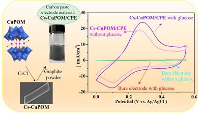 近日,公司曹新华教授课题组在无机化学领域知名期刊《Inorganic Chemistry》上发表了题为“Nanostructured Polyoxometalate-Based Heterogeneous Electrode Materials for Electrochemical Sensing of Glucose”DOI10.1021/acs.inorgchem.3c04596)的研究成果。该研究选用CsCl对水溶性K2Na8[Cu4(H2O)2(PW9O34)2]CuPOM)进行抗衡阳离子交换,得到形貌为光滑棒状的不溶性化合物CuPOMCs-CuPOM),再利用Cs-CuPOM对碳糊电极进行修饰(Cs-CuPOM/CPE),构建了电化学葡萄糖传感器。与Cs-MnPOMCs-FePOM及其它已报道的POMs基电极材料相比,Cs-CuPOM具有更快的电子传递动力学,展示出更高的电化学传感器活性,该项工作为开发高性能的葡萄糖传感器提供了理论参考。