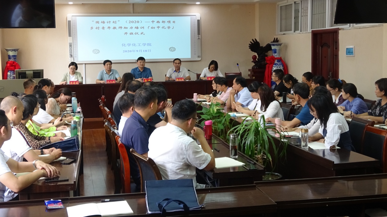 9月18日上午,太阳成城集团tyc234cc官网承担的“国培计划(2020)”中西部项目乡村青年教师助理培训(初中化学)开班仪式在实验楼407报告厅举行。太阳成城集团tyc234cc官网党委书记郭鹏、副经理骆定法等领导老师出席开班仪式。仪式由太阳成城集团tyc234cc官网国培计划培训班班主任沈久明老师主持。