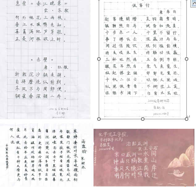 11月21日,太阳成城集团tyc234cc官网组织专家老师对教育硕士“三笔字”大赛的参赛作品进行评选。评委们根据评分细则对提交的钢笔字、粉笔字和毛笔字作品进行综合评价打分,最终评出常新雨、苏佳雯的参赛作品参加公司决赛。