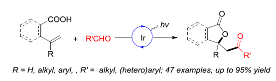 近日,公司饶伟浩博士课题组在有机化学领域知名期刊《The Journal of Organic Chemistry》上发表了题为“Photoredox-Catalyzed Acyl Lactonization of Alkenes with Aldehydes: Synthesis of Acyl Lactones”(DOI:10.1021/acs.joc.2c01732)的研究成果。该研究通过发展廉价易得的醛作为酰基化试剂,利用氢原子转移策略与可见光氧化还原催化策略的巧妙结合,发展了酰基内酯的绿色温和、高效构建新方法。通过自由基捕捉实验、荧光淬灭、光开/关和光量子产率实验等机理研究,揭示了该反应很可能经历了自由基链过程。
