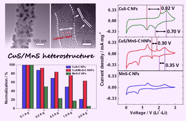 近日,公司刘会俏、曹康哲博士研究小组在Chemical Engineering Journal(影响因子:10.6)在线发表题为“Lowering the voltage-hysteresis of CuS anode for Li-ion batteries via constructing heterostructure”研究论文(10.1016/j.cej.2021.130548),信阳师范公司为第一署名单位。该研究针对转化反应负极材料放电电位和充电电位之间的较大滞后电压会降低电极能量效率的问题,通过构筑异质界面促进电荷的分离,改善电化学反应动力学,降低了滞后电压,为构建高能量效率电极材料提供了新思路。