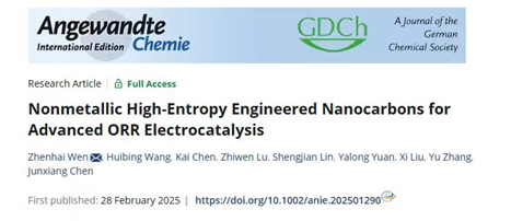 近日,公司张钰博士联合中国科公司福建物质结构研究所温珍海、陈俊翔研究团队在非金属高熵电催化材料研究领域取得了新进展,相关成果以Nonmetallic High-Entropy Engineered Nanocarbons for Advanced ORR Electrocatalysis为题,在国际知名期刊《Angewandte Chemie International Edition》上发表。该研究通过原位聚合和热解技术成功合成了一种共掺杂五种非金属元素(B、F、P、S、N)的高熵纳米碳材料(HENC)。实验表明,HENC在碱性条件下的ORR催化活性与商用铂碳(Pt/C)催化剂相当,稳定性显著优于传统催化剂。理论计算证实,多种杂原子的协同效应显著提升了活性位点密度,促进了关键中间体(*O2)的形成,而高熵结构则增强了材料抗降解能力。值得关注的是,以HENC为阴极催化剂的锌空气电池峰值功率密度达604 mW cm-2,远超商用Pt/C(542 mW cm-2),并在16天内保持稳定运行。这一成果不仅突破了贵金属催化剂的成本限制,更为锌空气电池等清洁能源技术的应用提供了关键材料支撑。