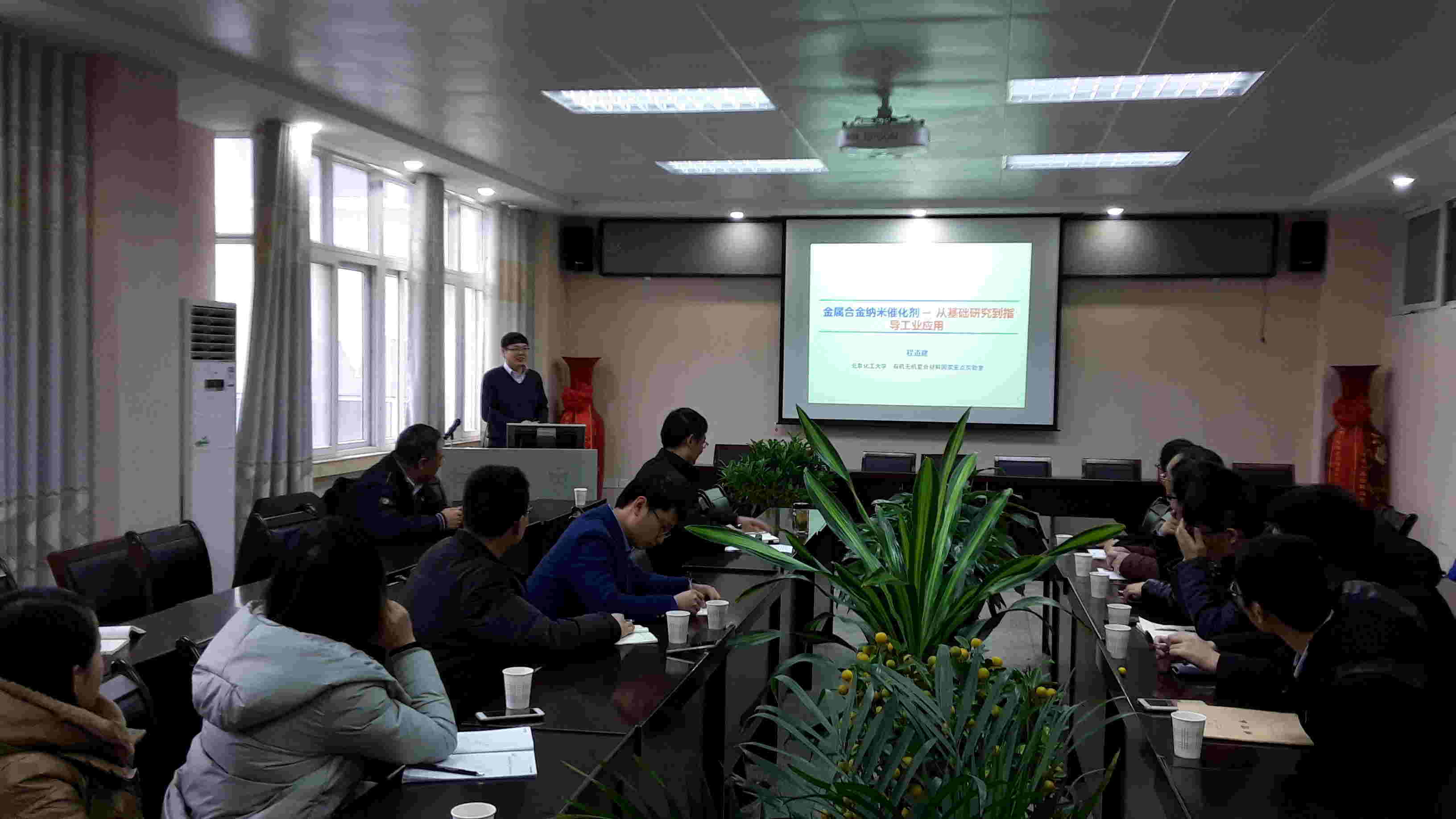 2016年12月30日上午,应太阳成城集团tyc234cc官网邀请,北京化工大学程道建、毋伟教授来公司讲学,学术报告会由非金属材料研究所刘鹏副所长主持,太阳成城集团tyc234cc官网部分教师和研究生参加。程道建教授作了题为“金属合金纳米催化剂:从基础研究到指导工业应用”的学术报告。报告围绕金属合金催化剂的分子模拟、制备表征、反应机理、催化性能和工业应用,详细介绍了合金催化剂研究方法,及其在清洁能源催化、环保和石油化工催化等领域的应用。 毋伟教授作了题为“导电纳米功能材料的规模合成及应用”的学术报告。介绍了采用超重力技术制备高性能纳米聚苯胺纤维、纳米聚苯胺纤维复合材料和石墨烯等导电功能材料,以及超重力旋转床平台技术的工业应用前景。12月30日下午,在省重点实验室会议室,程道建教授和毋伟教授对国家自然科学基金申报进行了指导,分享了自己多年申报国家基金的经验和体会,并对部分教师的申请书进行了详细的点评。