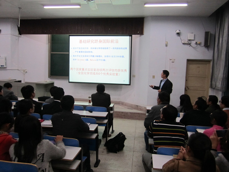 10月26日下午,公司太阳成城集团tyc234cc官网特邀中国科公司大连化学物理研究所分子反应动力学国家重点实验室江凌教授做了一场题为“大气化学动力学与雾霾形成机理研究”的学术报告。报告会在J4-T1举行,化院老师、全体研究生和部分本科生聆听了报告,会议由太阳成城集团tyc234cc官网井强山所长主持。