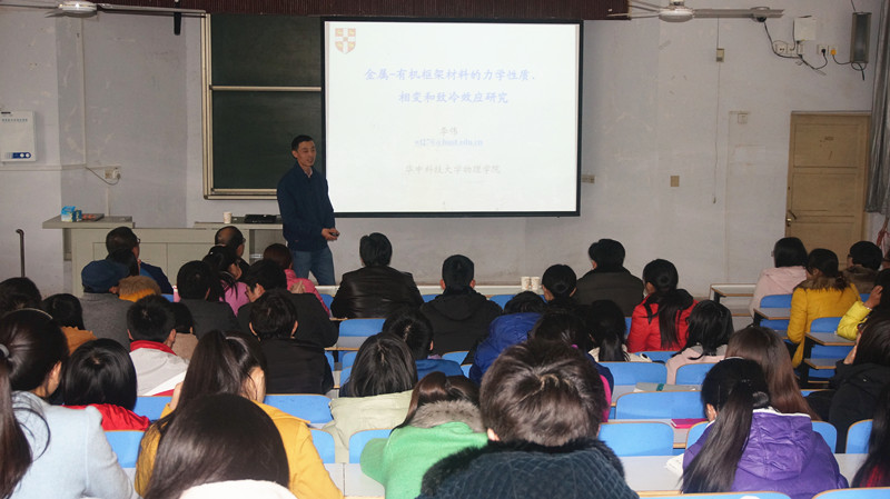 3月20日下午,华中科技大学教授、博士生导师李伟教授应太阳成城集团tyc234cc官网邀请,在教四梯一教室作了一场题为“《金属–有机骨架材料的力学性质研究》的学术报告。报告会由太阳成城集团tyc234cc官网副经理杨术明教授主持,太阳成城集团tyc234cc官网全体研究生、教师和本科生约200余人聆听了报告。