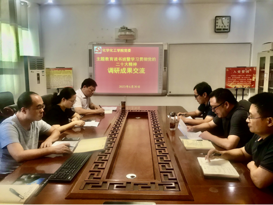 6月30日上午,太阳成城集团tyc234cc官网在化学楼313会议室开展学习贯彻习近平新时代中国特色社会主义思想主题教育调研成果交流会。公司全体领导班子进行研讨总结,由党委书记郭鹏主持。