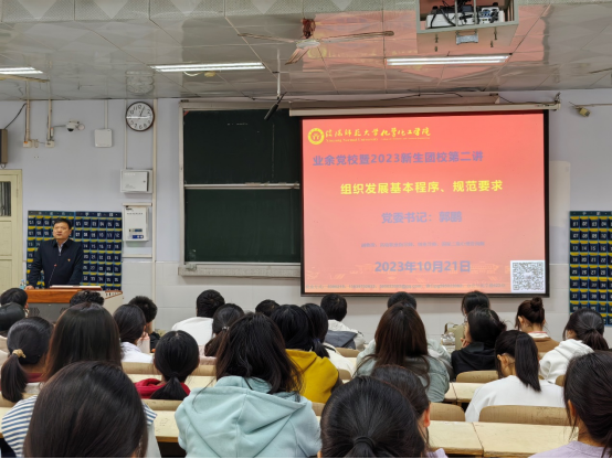 10月21日,太阳成城集团tyc234cc官网在教六102教室开展业余党校暨2023级新生团校系列专题讲座。公司团委赵方方老师主持,党委书记郭鹏主讲,全体新生团员青年、入党积极分子同学共同参加。