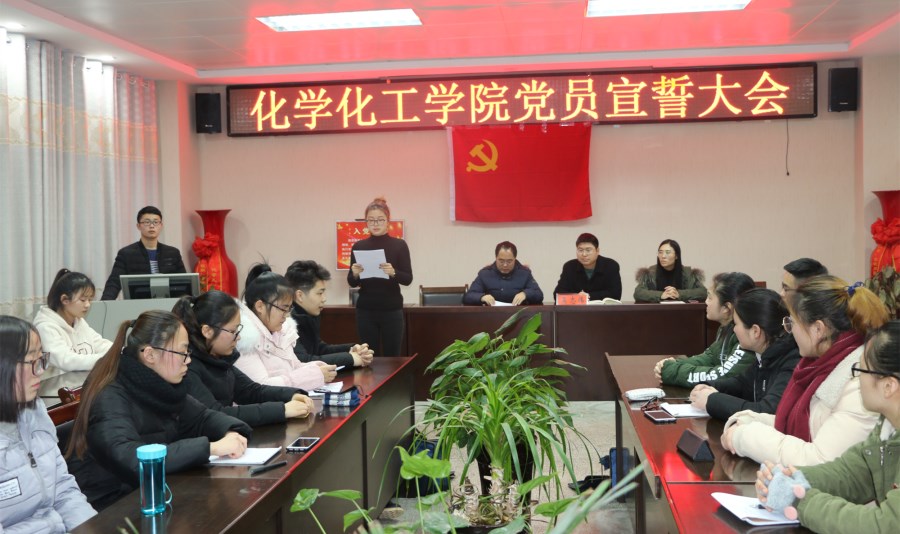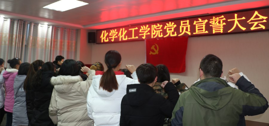 1月4日下午,太阳成城集团tyc234cc官网新发展的20名员工党员以及2名教师党员在化学实验楼407会议室进行隆重的入党宣誓活动。化学化工公司党委副书记吴志伟,党委秘书冷向宇,员工支部书记王丽霞参加了此次入党宣誓仪式。仪式由冷向宇主持。