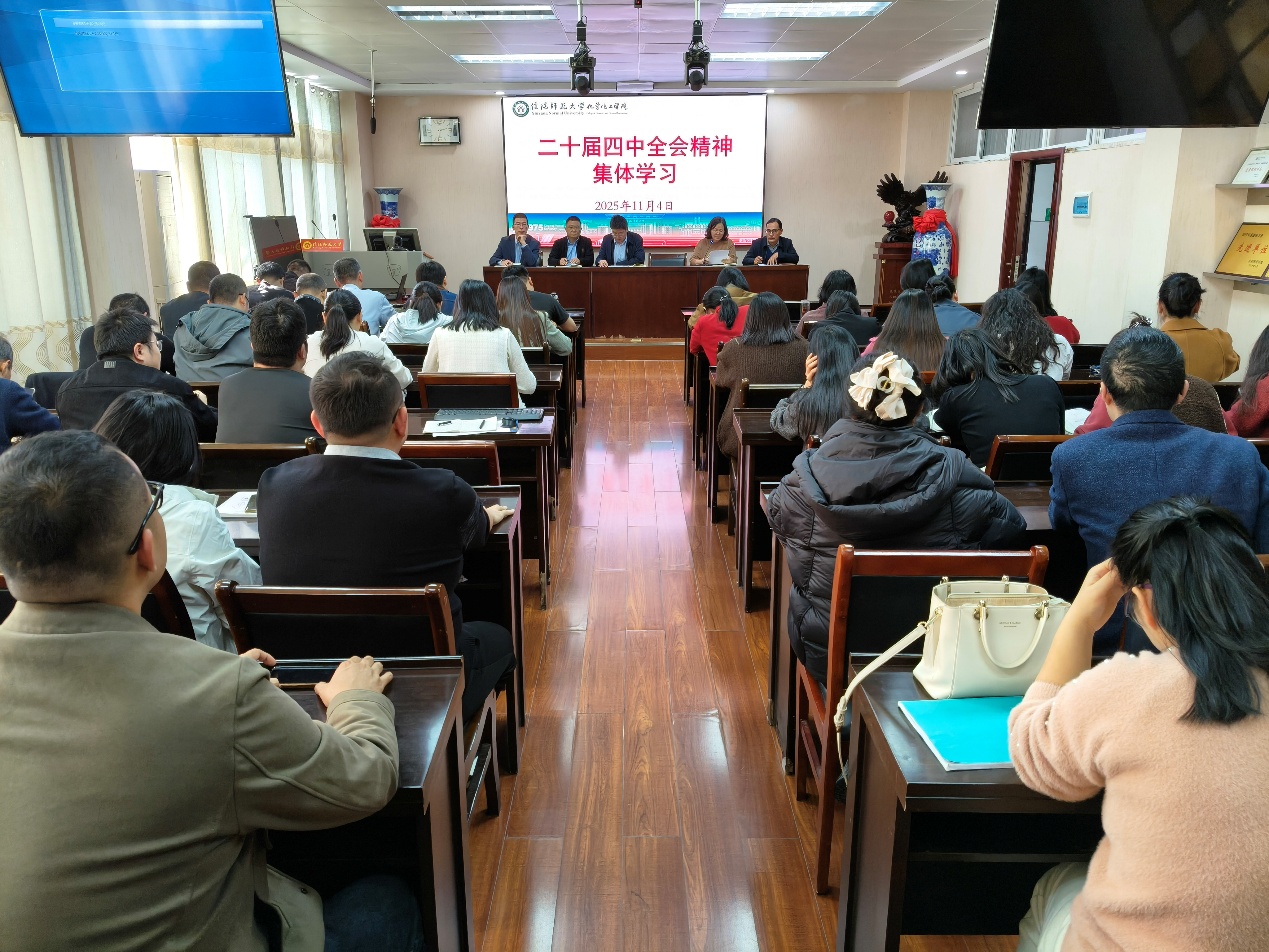 会上,集中学习了习近平总书记重要文章《关于〈中共中央关于制定国民经济和社会发展第十五个五年规划的建议〉的说明》和《中国共产党第二十届中央委员会第四次全体会议公报》《中共中央关于制定国民经济和社会发展第十五个五年规划的建议》等文件精神,重点解读了“十五五”时期是基本实现社会主义现代化的关键时期、经济社会发展的指导方针和主要目标、加快高水平科技自立自强等重要内容。