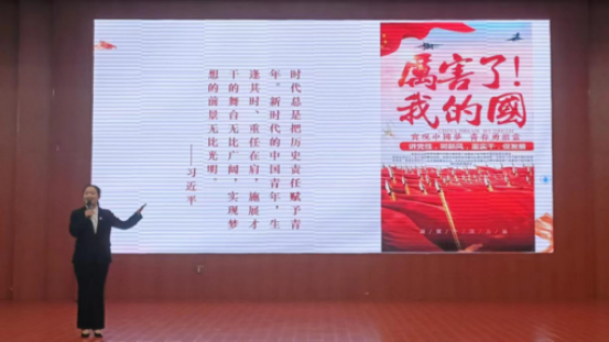 决赛现场,唐亚旭以《把青春献给扶贫,用生命诠释初心》为主题,讲述了时代楷模黄文秀扎根百色市百坭村倾情投入、奉献自我的感人故事,诠释了共产党人的初心使命,谱写了新时代的青春之歌,并号召当代老员工积极践行社会主义核心价值观,将其落细落小落实,她的演讲引起在场师生的共鸣,赢得了评委和观众的一致好评。