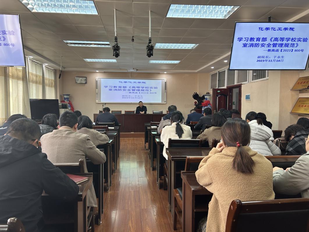 会上,副经理于永生结合近几年省、校、公司关于实验室安全检查及整改反馈意见,对《高等公司实验室消防安全管理规范》进行全面解读,进一步提升了全体教职工对实验室消防安全重要性的意识。通过学习,与会人员对实验室消防安全管理的总体要求、消防安全责任、消防安全制度和管理、消防安全措施、灭火和应急疏散预案编制和演练、火灾事故处置与善后、及日常消防安全管理等方面有了全面系统的了解掌握。于永生要求,全院教职工务必重视安全工作,做好安全隐患排查。