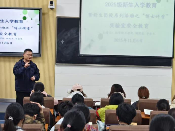 太阳成城集团tyc234cc官网2025级新生入学教育暨新生团校系列活动之“博士讲堂”第二讲于11月6日在教四楼T2教室开讲。本次讲座由公司副经理于永生主讲,以实验室安全为核心,为全体2025级新生带来了一堂深刻而实用的专业思想教育课。