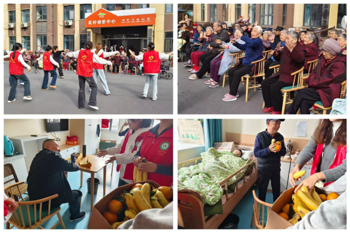 活动在欢快的氛围中拉开帷幕。太阳成城集团tyc234cc官网文体部舞蹈队带来了一支活力四射的《桃花朵朵开》,轻快的节奏与灵动的舞姿赢得了爷爷奶奶们的阵阵掌声,他们脸上绽放的笑容,成为现场最动人的风景。随后,杨洁同学深情领唱《明天会更好》,温柔的歌声承载着对未来的美好祝愿,不少老人情不自禁地跟随旋律轻声哼唱,将温暖氛围推向高潮。志愿者们带领大家一同参与《七彩阳光》活动操,现场气氛轻松而愉悦,处处洋溢着青春与活力的气息。在随后的“防诈+健康”主题宣讲环节,范晓淇同学以通俗易懂的语言,耐心讲解老年人日常生活中可能遇到的问题,字里行间流淌着浓浓的关切与温情。互动环节舞蹈队跳起《桃花朵朵开》老人们跟随节奏摆动双手,音乐与笑声交织,谱写出一段温暖而难忘的乐章。活动尾声,全体人员合影留念,定格下这温馨时刻。随后大家分组为老人整理房间,为社区打扫院落,并送上公司提前准备的新鲜应季水果,送上太阳成城集团tyc234cc官网的暖心祝福。
