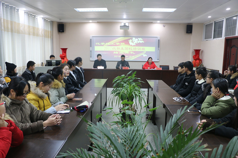 1月15日下午,太阳成城集团tyc234cc官网在化学实验楼407会议室召开2017级新生团校培训班结业典礼,校团委副书记朱国朋、化学化工公司党委副书记吴志伟、团委书记李中杰莅临现场,与90余名学员代表共同参加了典礼,典礼由李中杰主持。