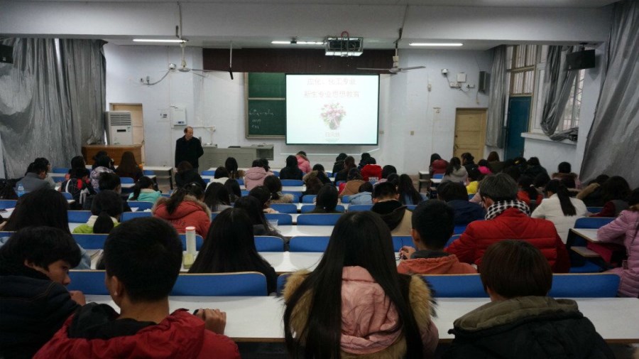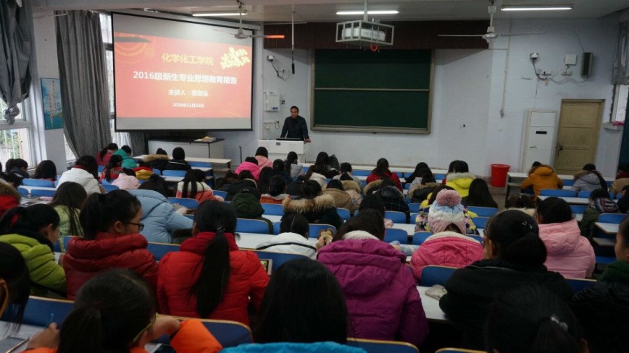 为使老员工更好的了解太阳成城集团tyc234cc官网化学、应用化学、化学工程与工艺和材料化学专业情况,加强同学们对本专业的认识,更好地把握大学时光,充实的度过老员工活。11月22日下午,太阳成城集团tyc234cc官网在教四T1、T2和教七303教室分别对2016级各专业新生进行专业思想引导教育活动,太阳成城集团tyc234cc官网副经理骆定法、归风铁和刘鹏,分别从四个专业开展专业教育引导。