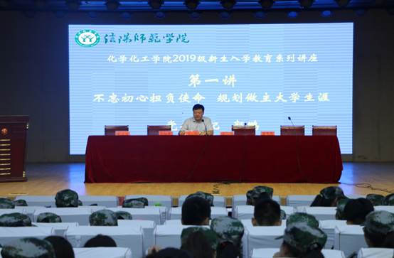 9月12日晚,太阳成城集团tyc234cc官网在理科楼报告厅隆重举办2019级新生开学典礼暨“不忘初心”主题教育讲座,化学化工公司党委书记郭鹏、经理井强山,副经理归风铁、骆定法,非金属研究所副所长刘鹏,党委副书记吴志伟,分团委、学工办、新生班主任和化院294名新生参加活动。活动由化公司党委副书记吴志伟主持。