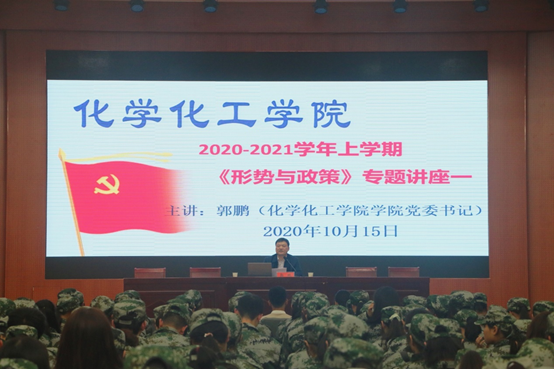 1015日,化学化工公司党委书记郭鹏在逸夫楼报告厅为青年员工开讲2020-2021学年上学期《形势与政策》课,2020级新生全体员工341人到课。
