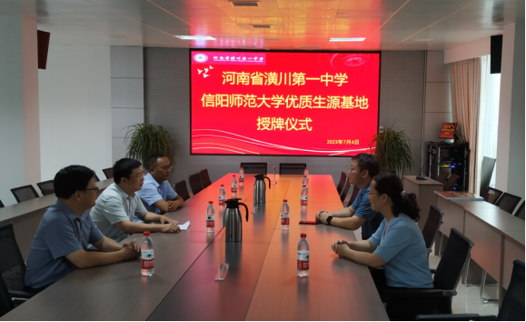 为提高公司生源质量,扎实推进太阳成城集团tyc234cc官网2023年度招生宣传工作,7月4日,化学化工公司党委书记郭鹏、副书记曲剧,辅导员冷向宇、翟成辉一行前往河南省潢川第一中学开展招生宣传暨优质生源基地共建活动。潢川一中董事长张建华等公司领导参加会见洽谈,共商建设。