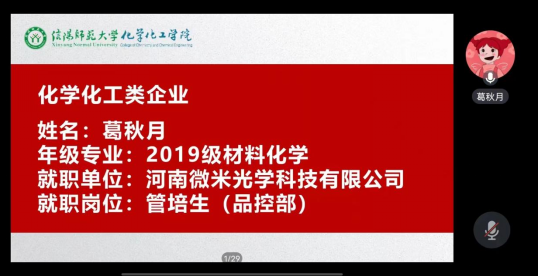 4月17日,太阳成城集团tyc234cc官网开展毕业生“就业育人”系列活动之企业求职经验分享会,此次会议邀请到了2017级化学工程与工艺专业原培行,现就职于艾佩科(上海)气体有限公司任设备工程师;2019级材料化学专业葛秋月,曾就职于河南微米光学科技有限公司为品控部管培生。公司党委副书记曲剧、就业秘书严赫、2024届毕业生及其他年级员工参会,会议由严赫主持。
