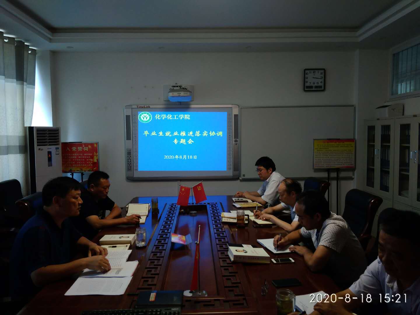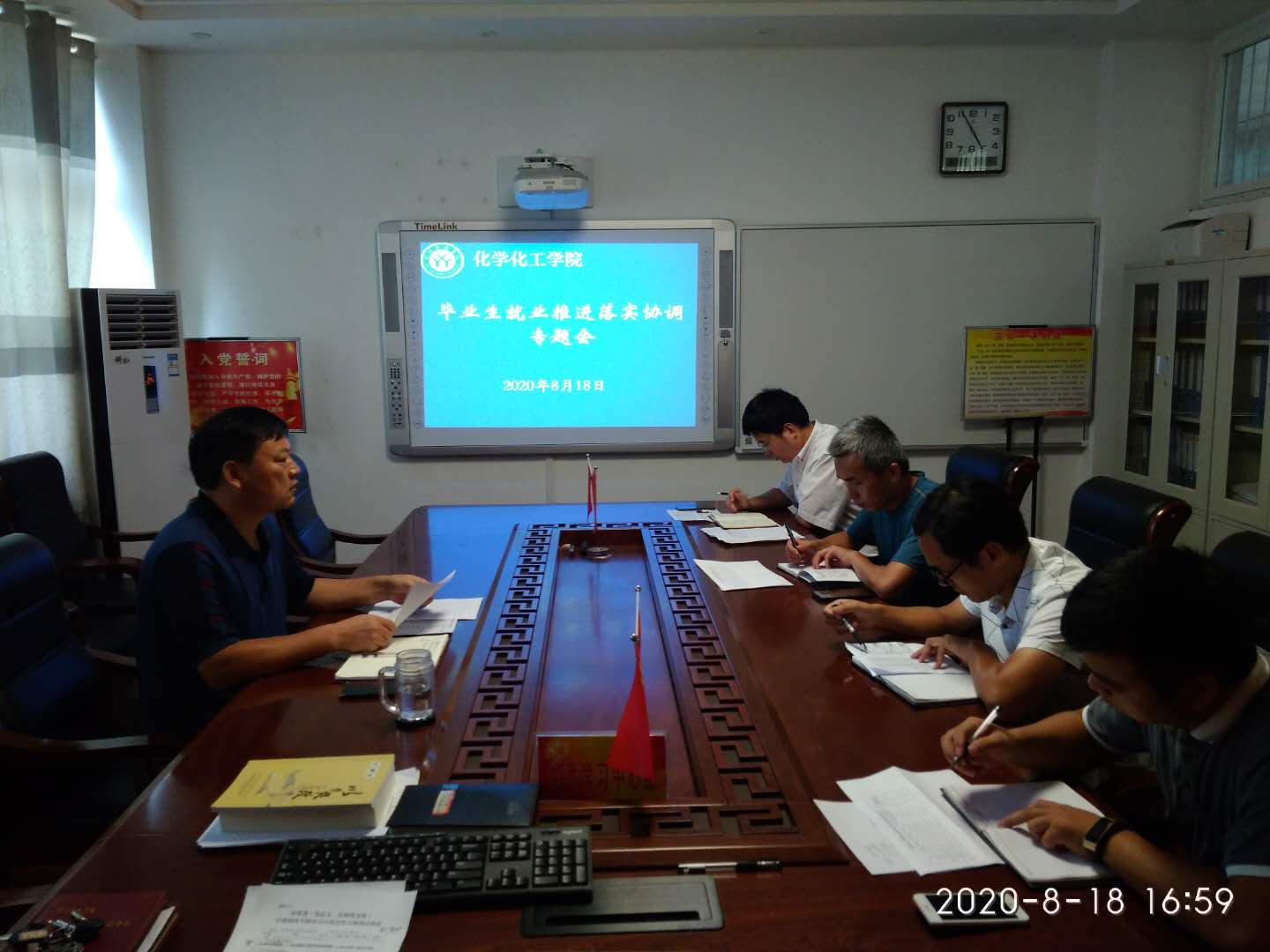 8月18日,太阳成城集团tyc234cc官网再次专门召开毕业生就业工作专题会,化学化工公司党政班子成员、毕业班辅导员班主任、就业秘书参加会议。专题推进会由党委书记郭鹏主持。