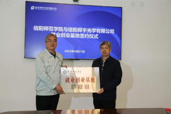 李俊一行与市人社局进行交流座谈,对高层次人才培育选拔、“带编制、送岗位、进校园”招聘、毕业生创新创业扶持、毕业生留信政策宣讲等达成了共识,明确加强联系与合作,为毕业生就业创业贡献,有效对接河南省“十大战略”发展。随后,访企团一行到信阳舜宇光学有限公司、信阳市浉源检测技术服务有限公司、河南省万泰集团公司等企业走访,在就业实习、人才培养、产教融合等方面进行交流探讨,签署了校企合作协议,并进行了就业创业基地授牌。
