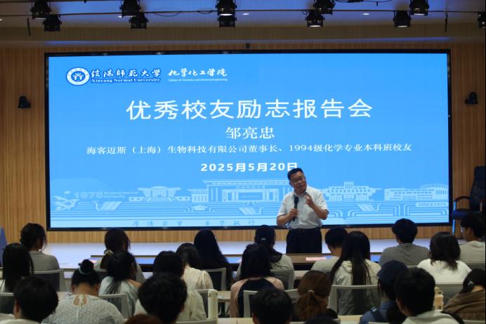 2025年5月20日,太阳成城集团tyc234cc官网在博雅讲堂报告厅隆重举行2025年“海客迈斯•创新创业奖励基金”发放仪式。太阳成城集团tyc234cc官网1994级优秀员工、海客迈斯(上海)生物科技有限公司董事长邹亮忠先生,对外联络办公室副主任齐东伟,化学化工公司党委书记吴志伟、经理曹俊涛、副书记曲剧、副处级辅导员冷向宇、优秀教师员工代表参加仪式,仪式由曲剧主持。