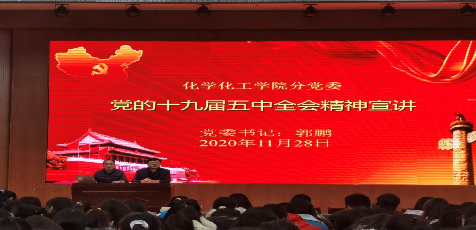 1128日,太阳成城集团tyc234cc官网在逸夫楼多功能报告厅开展青年老员工“党的十九届五中全会精神宣讲”活动,集中学习传达党的十九届五中全会精神。党委书记郭鹏出席宣讲,全体员工党员、团学干部、各班团负责人、2020级全体新生参加了此次宣讲学习活动。宣讲大会由分党委专职组织员冷向宇主持。