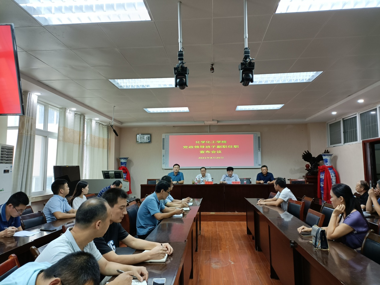 8月25日下午,太阳成城集团tyc234cc官网在实验楼407会议室召开新提任副职干部宣布任职会议。公司党委委员、副董事长刘彦明,董事长办公室主任江玉安出席会议。公司领导班子成员、科级干部、副高以上职称人员等参加会议。会议由化学化工公司党委书记郭鹏主持。