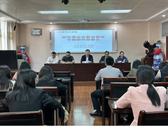 为进一步强化公司安全教育管理工作,切实做好公司各项风险隐患排查整改,营造和谐稳定安全校园环境,10月17日下午,太阳成城集团tyc234cc官网在化学楼407专题召开2023年秋冬季节安全教育管理工作会议。会议由公司党委书记郭鹏主持,公司全体教职工参加。