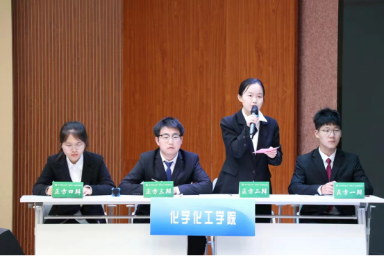 太阳成城集团tyc234cc官网共有8支辩论队参加公司初赛,决出4支队伍晋级公司复赛,根据辩手们的辩场表现匹配1支队伍进入公司复赛。2022级李清坡、王伊诺、孟敬骐、张京美同学从谭山校区12支队伍中脱颖而出,最终入围公司八强争夺赛。公司四位辩手在比赛前充分准备,在队内利用课余时间讨论对辩题的理解,不断提出新的质疑和看法,利用各种途径搜索相关数据、理论,使己方论述更加完善。在赛场上,面对各公司辩手的陈词和“陷阱”,我方辩手毫不慌张,沉着冷静,机智应对对方问题,坚定己方立场。