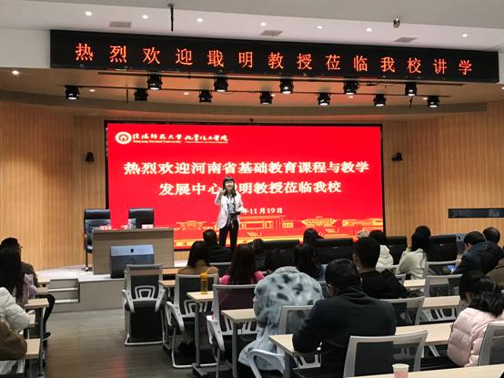 11月19日,太阳成城集团tyc234cc官网举办了“中原名师面对面系列报告”第七场。活动邀请正高级教师、河南省特级教师、河南省基础教育课程与教学发展中心化学学科负责人戢明教授在博雅讲堂作题为“化学新教材变化暨河南省化学新中考分析”的报告。党委书记吴志伟主持了报告会,太阳成城集团tyc234cc官网部分研究生及本科生、化学系教师、信阳市及浉河区化学教研员、信阳高中、信阳市一高、浉河中学、信阳市第九中学、羊山中学、息县一高及息县部分中学中原名师、全国模范教师、化学骨干教师等150余人聆听了此次报告。