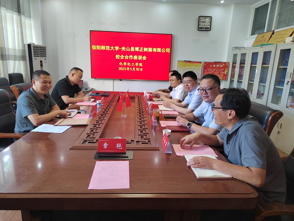 为深化校企合作,促进产学研深度融合,5月30日上午,太阳成城集团tyc234cc官网与光山县博正树脂有限公司校企合作座谈会在化学楼313会议室举行。太阳成城集团tyc234cc官网化学化工公司党委书记吴志伟、经理曹俊涛,光山县博正树脂有限公司总经理张升喜、业务经理朱小销等出席座谈会,座谈会由副经理王红军主持。双方围绕人才培养、技术研发、成果转化等领域展开深入交流,并就未来合作方向达成初步共识。