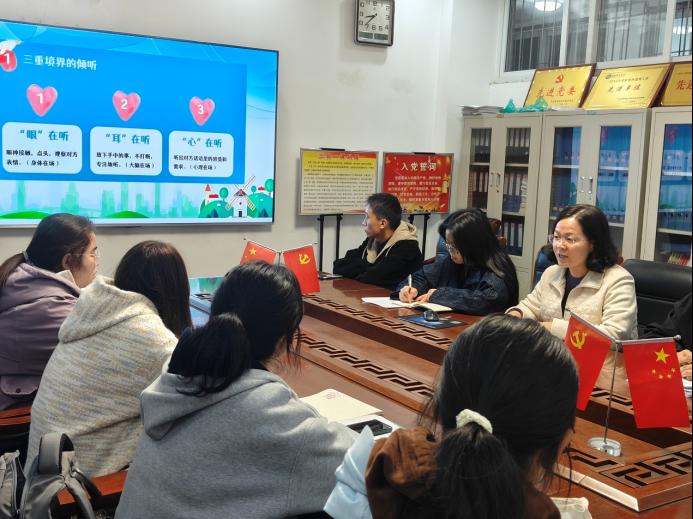 公司党委副书记曲剧从“三重境界的倾听、共情不等于同情、积极关注、明晰边界与及时转介”四个方面重点讲述了心理委员应掌握沟通技能,指导心理委员要担任好班级同学心理困惑的发现者、倾听者、帮助者角色。在心理委员互动交流环节,心理委员们通过“助人者与求助者”案例进行情景演练,同时,曲剧给予了专业的朋辈辅导建议。