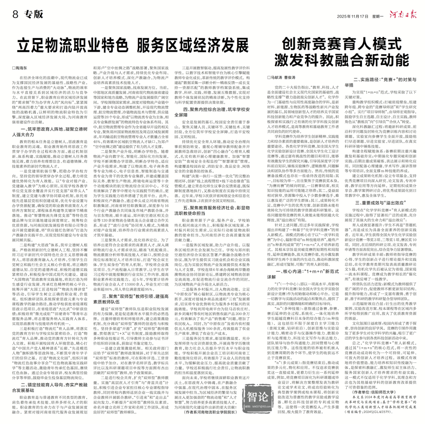 2025年11月17日,《河南日报》以《创新竞赛育人模式 激发科教融合新动能》为题,在第08版专题报道公司马献涛博士、曹俊涛教授团队的最新教研成果(报道链接:https://dzb.henandaily.cn/html5/2025-11/17/content_17_1767213.htm?curr=),充分彰显公司在基础学科创新人才培养领域的探索成效与示范价值。