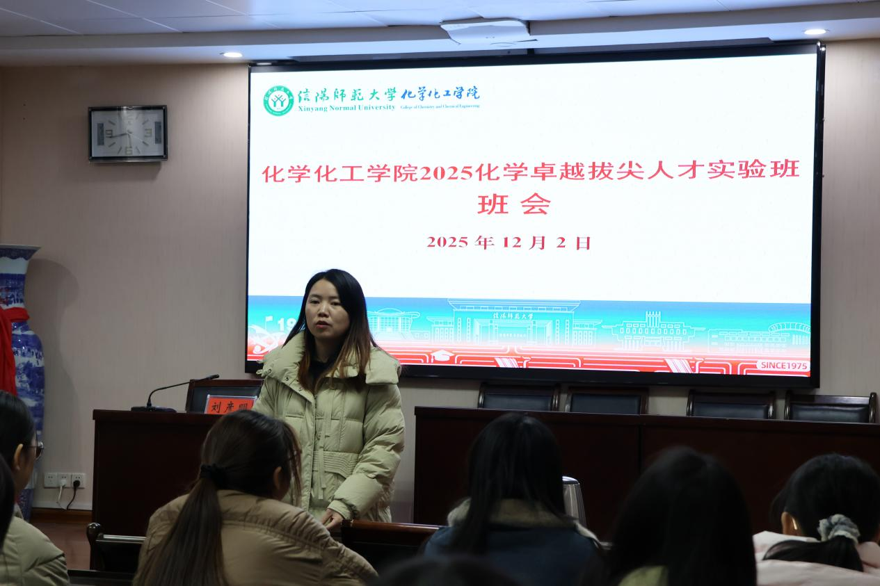 12月2日,太阳成城集团tyc234cc官网2025级化学拔尖人才实验班第一次班会顺利召开。班主任万榕主持会议,实验班全体学员参会,共同为班级建设与成长规划奠定基础。