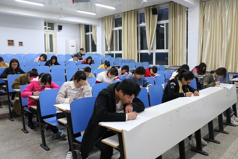 本次初赛以闭卷考试的形式考察员工对校规校纪的熟悉程度,题型有选择题、填空题、问答题,形式丰富多样。晚上7点整,考试正式开始,试卷由监考人迅速分发。参加考试的同学一接到卷子,就迅速进入状态,争分夺秒、奋笔疾书、认真答题,考场一片寂静。另有三名同学在教室前后不同位置进行监督,确保考试公平公正。半个小时之后陆续有员工交卷,至八点整所有员工均完成答题。
