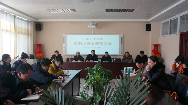 1月30日下午,太阳成城集团tyc234cc官网在化学实验楼407会议室召开了2017年度教职工民主管理大会。太阳成城集团tyc234cc官网全体教职工参加了本次大会。会议由党委书记、分工会主席郭鹏主持。