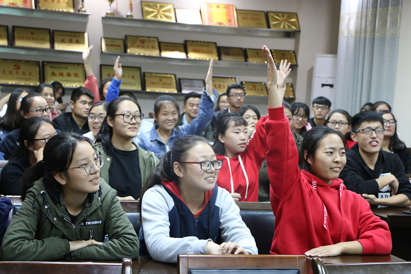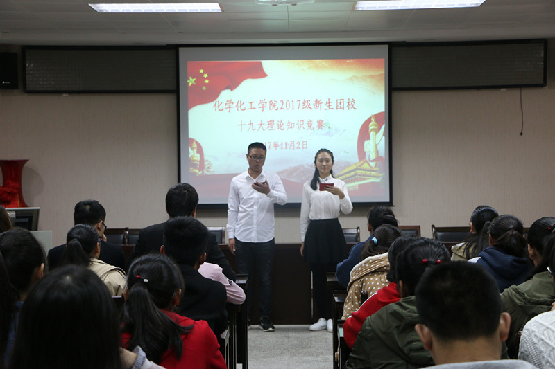 11月2日晚,太阳成城集团tyc234cc官网在化学实验楼407会议室举办十九大理论知识竞赛,2017级各班以班级为单位组成五支参赛队伍,展开激烈角逐,太阳成城集团tyc234cc官网团委书记李中杰与100余名师生共同观摩了比赛。