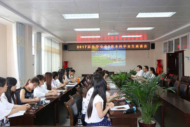 5月24日下午,太阳成城集团tyc234cc官网2017届毕业生座谈会在化学实验楼407会议室召开,化公司党委书记郭鹏携毕业班班主任曹俊涛、路振国对话四十余名毕业生代表,与他们话青春、话成长、话毕业。会议由公司分团委王丽霞主持。