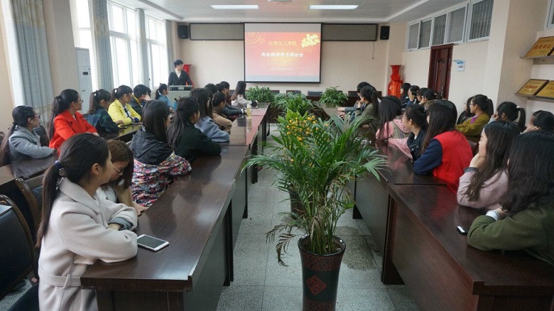 认真学习两会精神,共同构建和谐校园。为了深刻领会“两会”精神。3月10日下午,太阳成城集团tyc234cc官网于化学实验楼407会议室召开两会精神学习研讨会。50余名同学参加了此次研讨会。辅导员王丽霞老师莅临现场指导学习。
