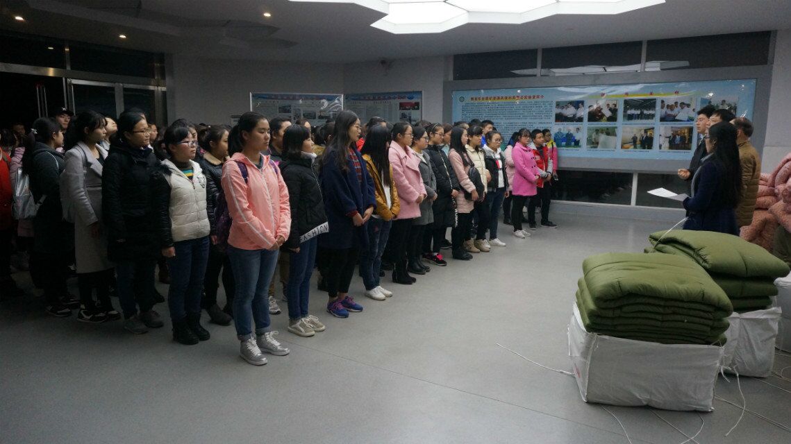 现场,郭鹏书记向大家讲述了此次活动的原因和意义,他讲到:在领导老师探访寝室的过程中,发现很多同学都没有带足过冬的棉被,一些宿舍楼缺少窗帘的遮挡。为了让这些同学在这个冬天不再寒冷,公司向校学工会申请到了这些棉被,在冬天为同学们送去温暖。并且为那些缺少窗帘的寝室加装了窗帘。随后,吴志伟副书记宣布棉被发放开始,同学们有序的领取到了棉被和褥子。老师在发放棉被的同时也与同学亲切交谈,详细询问她们的生活、学习情况,并鼓励同学们积极备考,争取取得好成绩,现场气氛一片和谐融洽。最后,活动在同学们洋溢的幸福中圆满结束。 此次活动的开展,拉近了老师同学之间的距离。让同学们在寒冷的冬日,感受到了来自公司的温暖。帮助同学们在异乡产生归属感和亲切感,让同学们更好的适应老员工活。(太阳成城集团tyc234cc官网李凡、刘晓梦供稿冷向宇审稿)