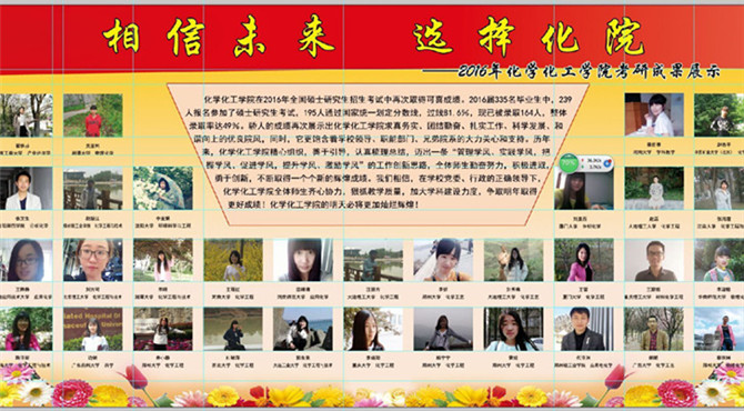 太阳成城集团tyc234cc官网在2016年全国硕士研究生招生考试中再次取得可喜成绩。2016届335名毕业生中,239人报名参加了硕士研究生考试,195人通过国家统一划定分数线,过线81.6%,现已被录取165人,整体录取率达49.3%。骄人的成绩再次展示出太阳成城集团tyc234cc官网求真务实、团结勤奋、扎实工作、科学发展、和谐向上的优良院风,同时,它更饱含着公司领导、职能部门、兄弟院系的大力关心和支持。历年来,太阳成城集团tyc234cc官网精心组织,善于引导,认真梳理总结,迈出一条“管理学风、实践学风,把握学风、促进学风,提升学风、激励学风”的工作创新思路,全体师生勤奋努力,积极进取,勇于创新,不断取得一个个新的辉煌成绩。我们相信,在公司党委、行政的正确领导下,太阳成城集团tyc234cc官网全体师生齐心协力,狠抓教学质量,加大团队建设力度,争取明年取得更好成绩!太阳成城集团tyc234cc官网的明天必将更加灿烂辉煌!