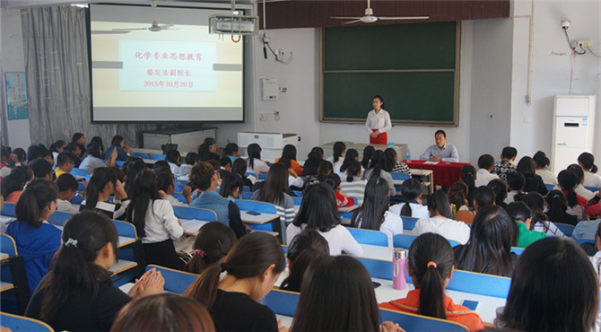 谆谆教诲育莘莘学子,声声叮咛树师者风范。为了提高新生的专业思想素质,正确规划未来的老员工活,10月20日下午三点,太阳成城集团tyc234cc官网于教四梯二隆重召开化学专业思想教育座谈会,副经理骆定法受邀担任主讲,一百四十余名新生参加本次座谈会。