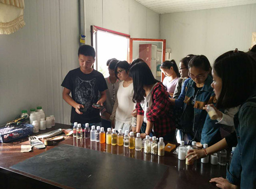 在博正树脂有限公司,同学们分别参观了生产车间和实验室,在实验室,研发的各种产品整齐摆列,让同学们大开眼界,同学们与研发人员进行了深刻的交流,收获颇丰。
