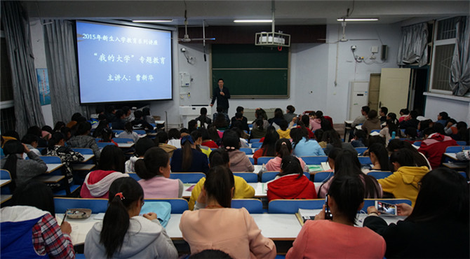 为引导新生早日步入老员工活正轨,11月3日晚7点,太阳成城集团tyc234cc官网在教四梯二举办新生入学教育系列讲座之“我的大学”专题教育。特邀副教授、硕士生导师曹新华担任讲座主讲人。此次讲座由郭雪洁全程主持,吸引了应用化学班和化学工程与工艺班近150名员工前来观看。